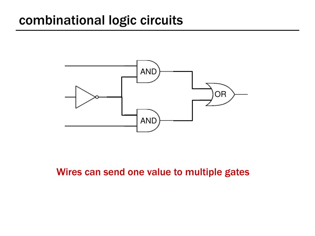 combinational logic circuits OR Wires can send one value to multiple gates AND AND