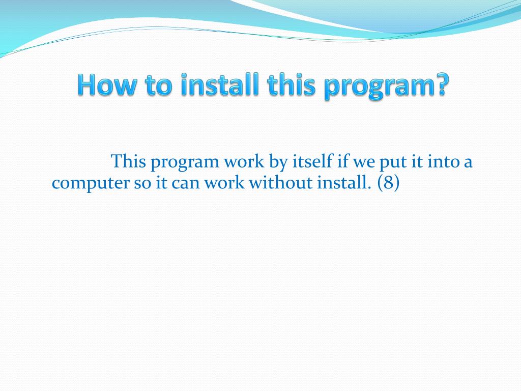 How to install this program? This program work by itself if we put it into a computerso it can work without install. (8)