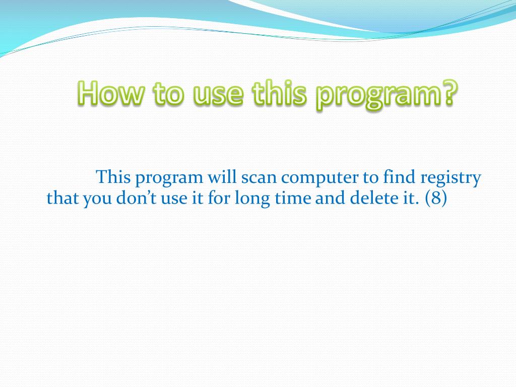 How to use this program? This program will scan computer to find registry that you don’t use it for long time and delete it. (8)