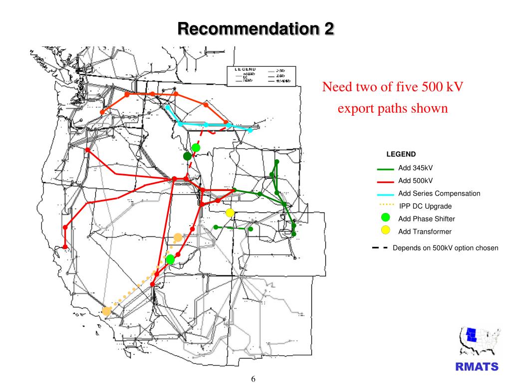 LEGEND Add 345kV Add 500kV Add Series Compensation IPP DC Upgrade Add Phase Shifter Depends on 500kV option chosen Add Transformer Recommendation 2 Need two of five 500 kV export paths shown
