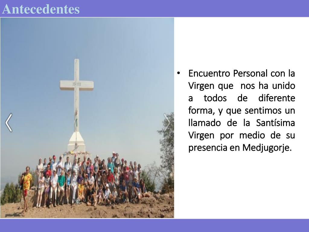 Antecedentes • Encuentro Personal con la Virgen que nos ha unido a todos de diferente forma, y que sentimos un llamado de la Santísima Virgen por medio de su presencia en Medjugorje.
