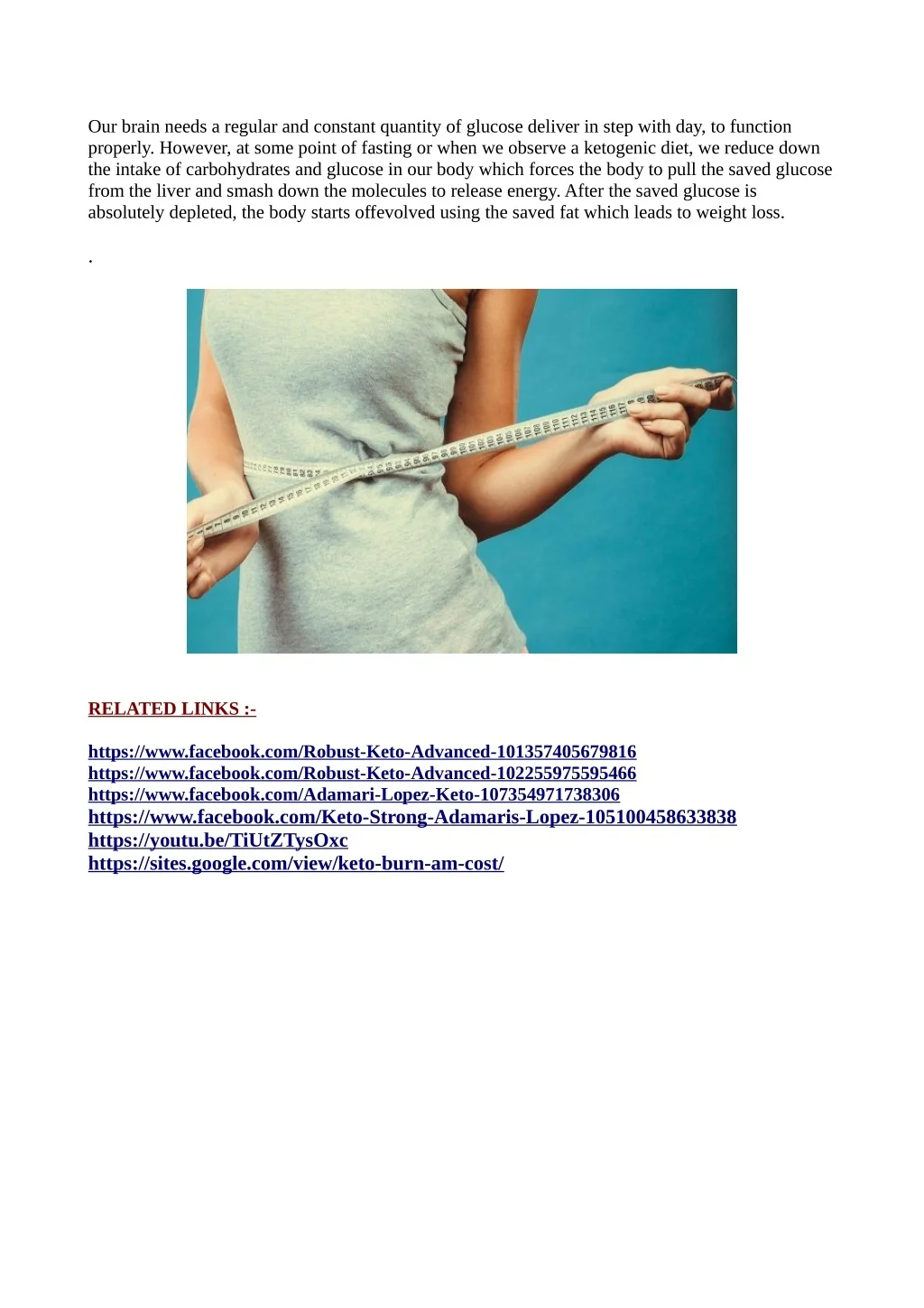 Our brain needs a regular and constant quantity of glucose deliver in step with day, to function properly. However, at some point of fasting or when we observe a ketogenic diet, we reduce down the intake of carbohydrates and glucose in our body which forces the body to pull the saved glucose from the liver and smash down the molecules to release energy. After the saved glucose is absolutely depleted, the body starts offevolved using the saved fat which leads to weight loss. . RELATED LINKS :- https://www.facebook.com/Robust-Keto-Advanced-101357405679816 https://www.facebook.com/Robust-Keto-Advanced-102255975595466 https://www.facebook.com/Adamari-Lopez-Keto-107354971738306 https://www.facebook.com/Keto-Strong-Adamaris-Lopez-105100458633838 https://youtu.be/TiUtZTysOxc https://sites.google.com/view/keto-burn-am-cost/