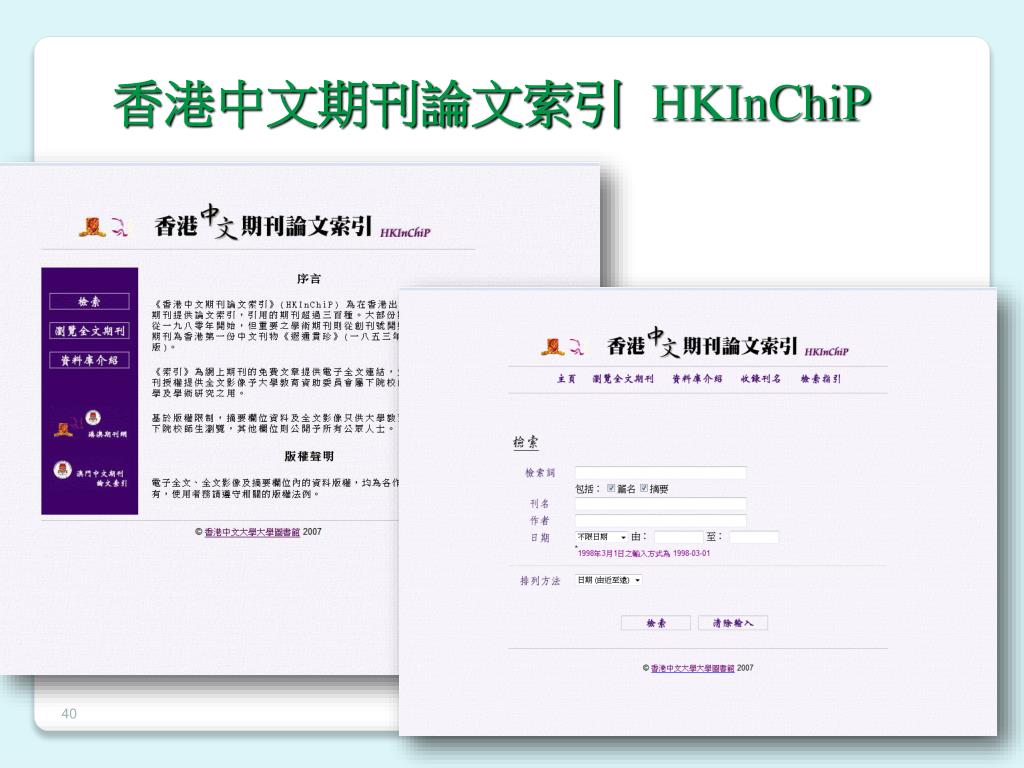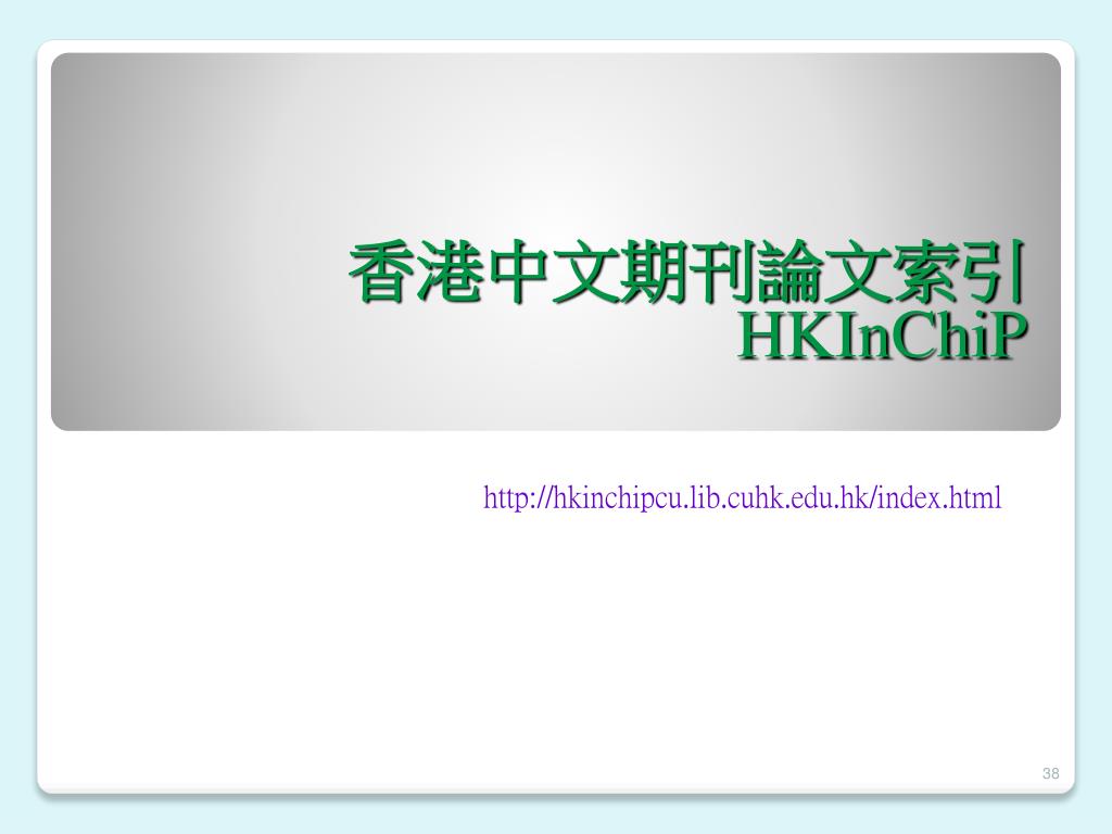 香港中文期刊論文索引HKInChiP http://hkinchipcu.lib.cuhk.edu.hk/index.html