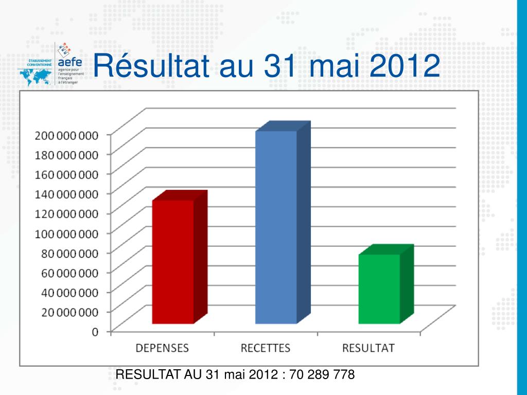 Résultat au 31 mai 2012 RESULTAT AU 31 mai 2012 : 70 289 778