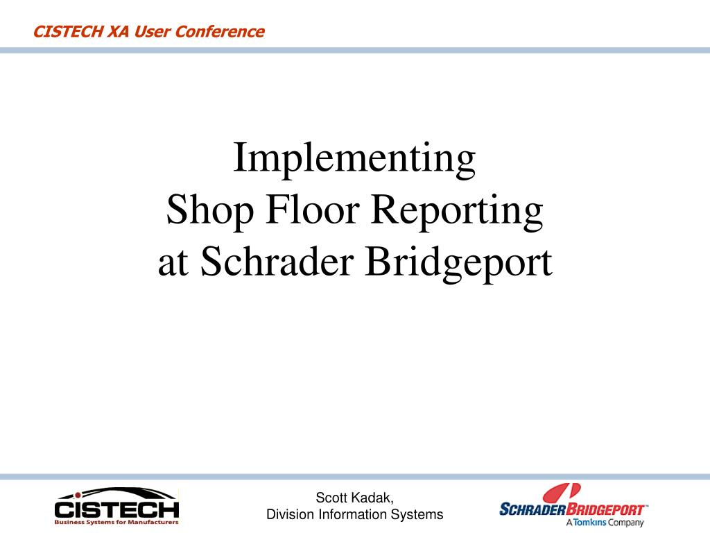 Implementing Shop Floor Reporting at Schrader Bridgeport Scott Kadak, Division Information Systems