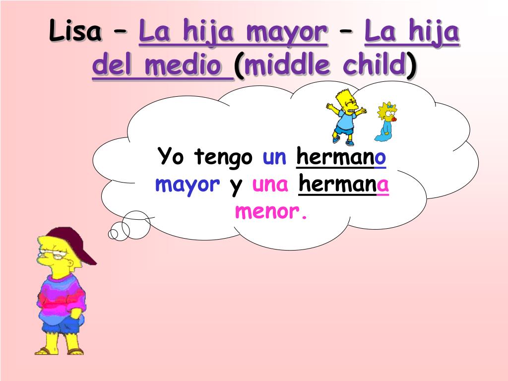 Lisa – La hija mayor – La hija del medio (middle child) Yo tengo unhermano mayor y unahermana menor.
