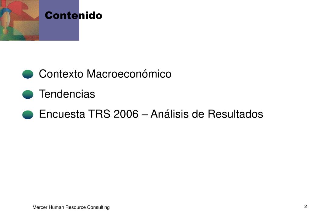 Contenido Contexto Macroeconómico Tendencias Encuesta TRS 2006 – Análisis de Resultados
