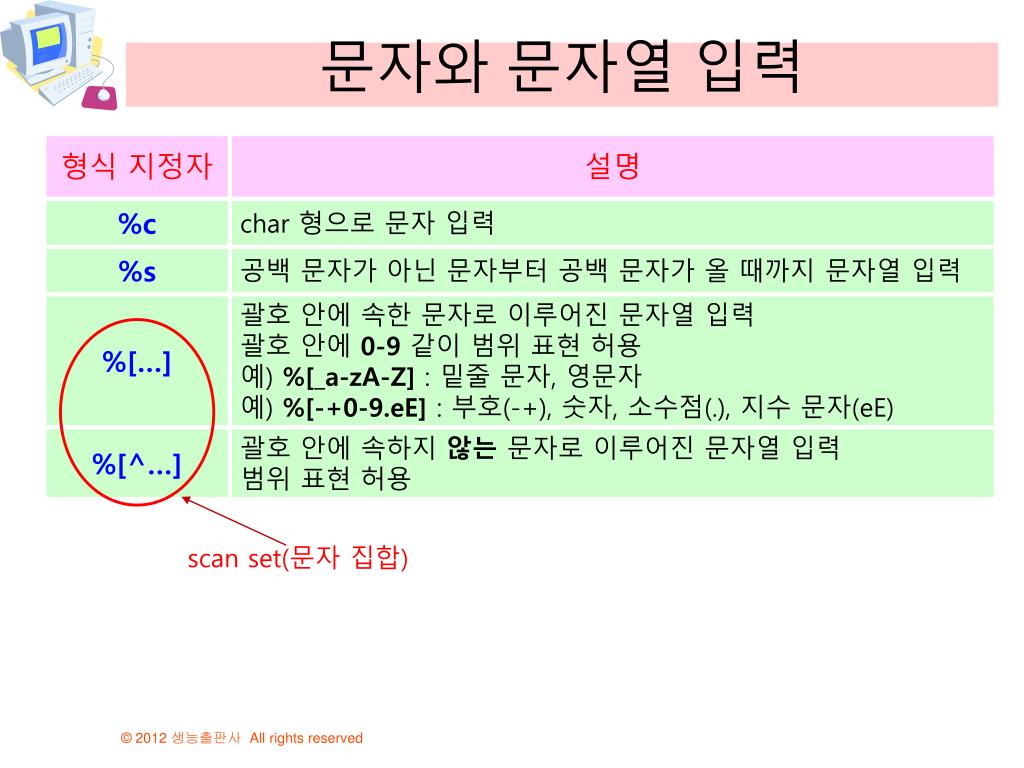문자와 문자열 입력 scan set(문자집합)