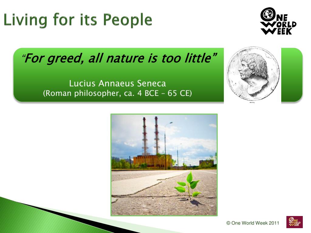Living for its People • “For greed, all nature is too little” • LuciusAnnaeus Seneca • (Roman philosopher, ca. 4 BCE – 65 CE)