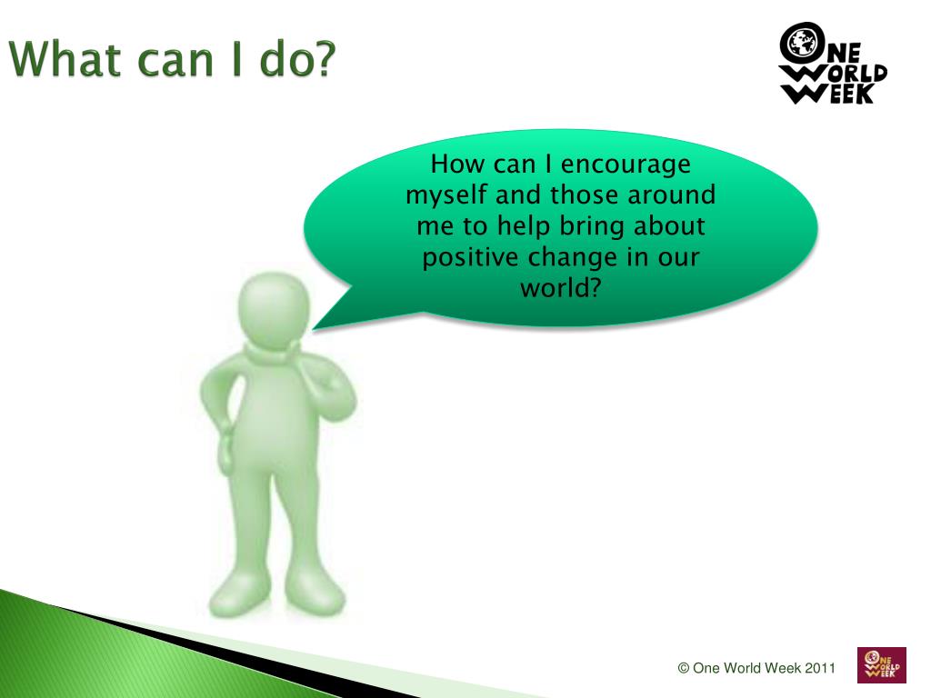 What can I do? • How can I encourage myself and those around me to help bring about positive change in our world?
