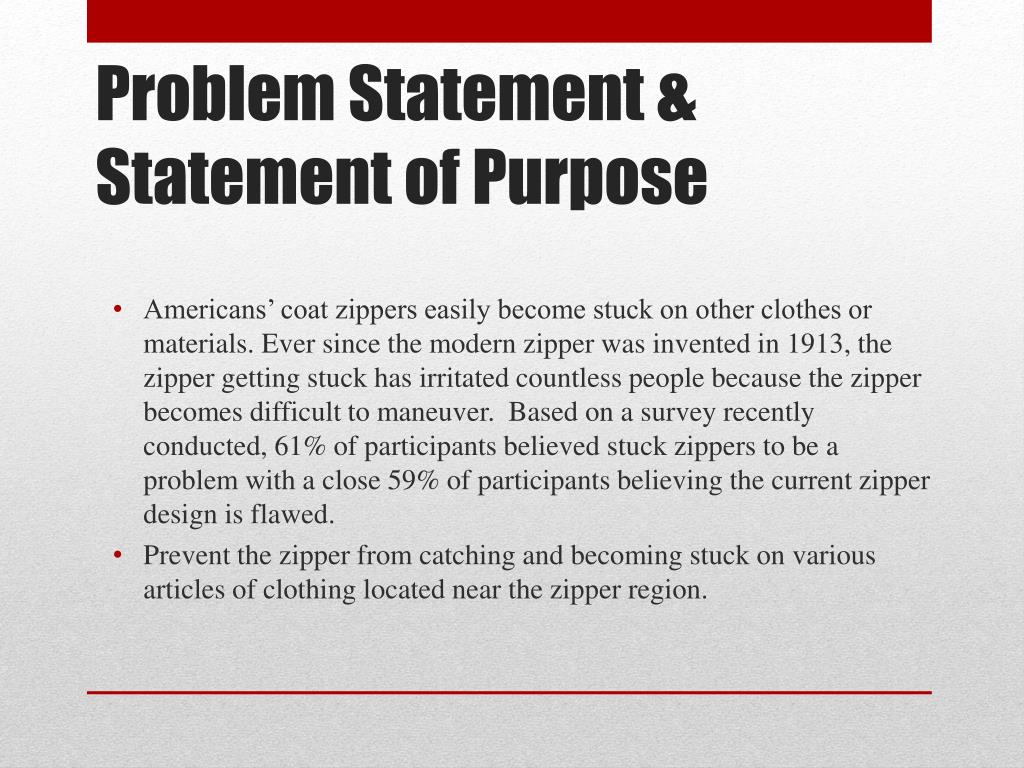 Americans’ coat zippers easily become stuck on other clothes or materials. Ever since the modern zipper was invented in 1913, the zipper getting stuck has irritated countless people because the zipper becomes difficult to maneuver. Based on a survey recently conducted, 61% of participants believed stuck zippers to be a problem with a close 59% of participants believing the current zipper design is flawed. • Prevent the zipper from catching and becoming stuck on various articles of clothing located near the zipper region. Problem Statement & Statement of Purpose