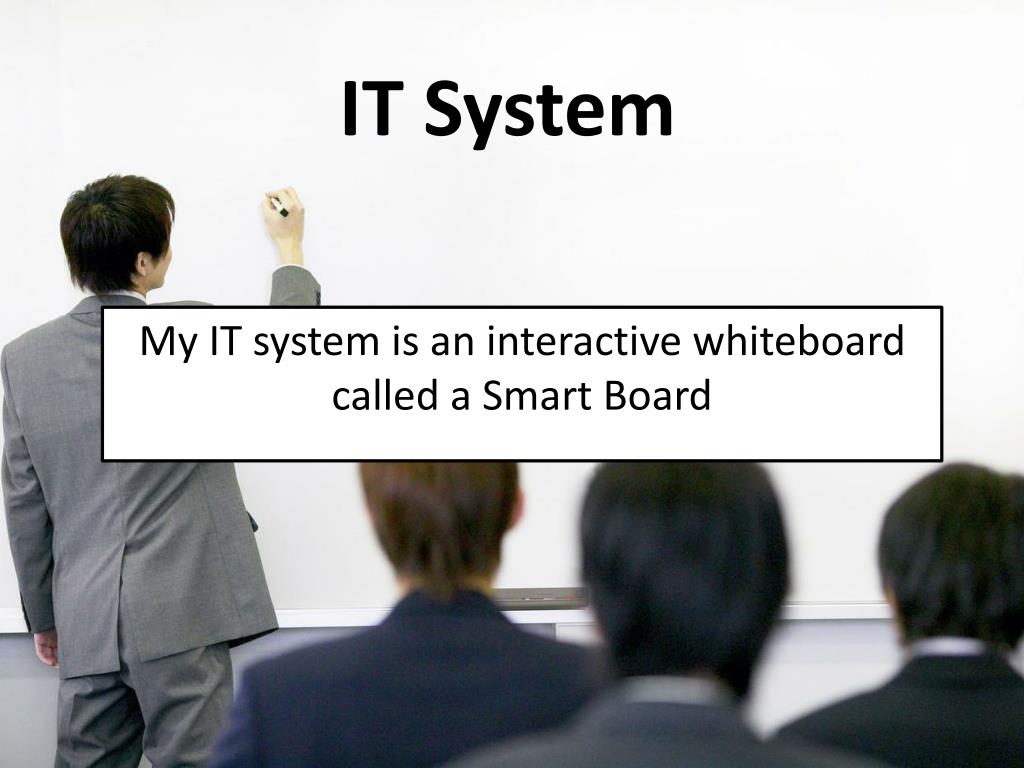 IT System My IT system is an interactive whiteboard called a Smart Board