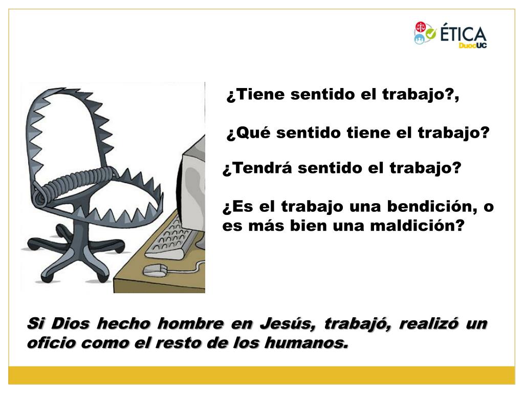 ¿Tiene sentido el trabajo?, ¿Qué sentido tiene el trabajo? ¿Tendrá sentido el trabajo? ¿Es el trabajo una bendición, o es más bien una maldición? Si Dios hecho hombre en Jesús, trabajó, realizó un oficio como el resto de los humanos.