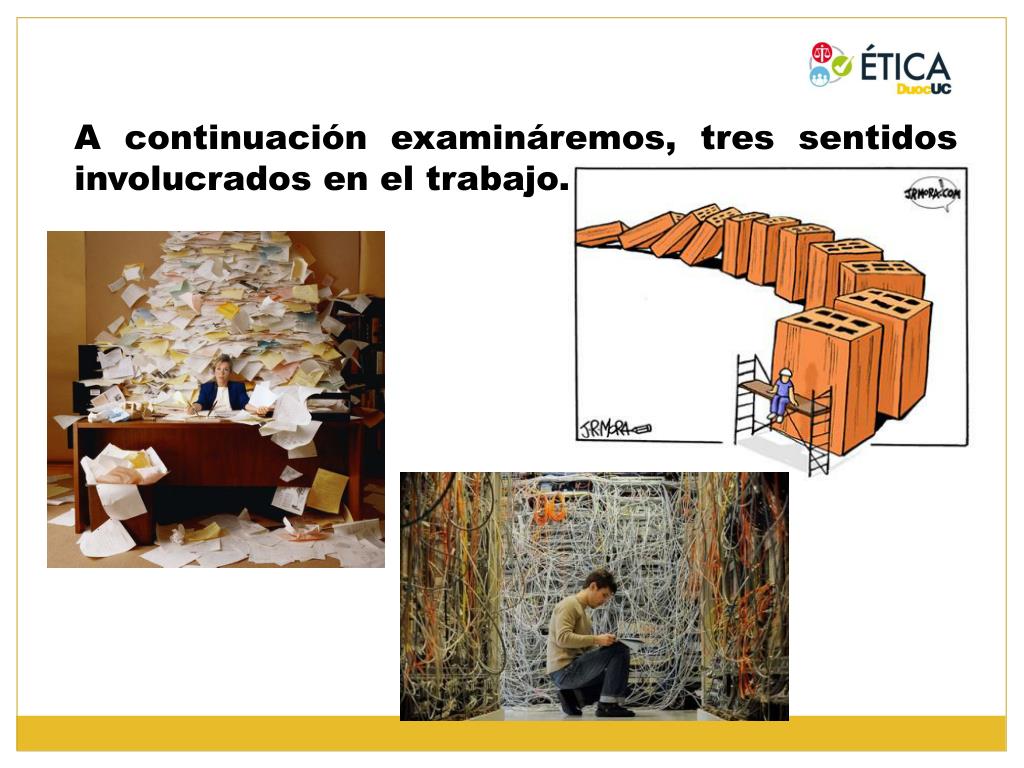 A continuación examináremos, tres sentidos involucrados en el trabajo.