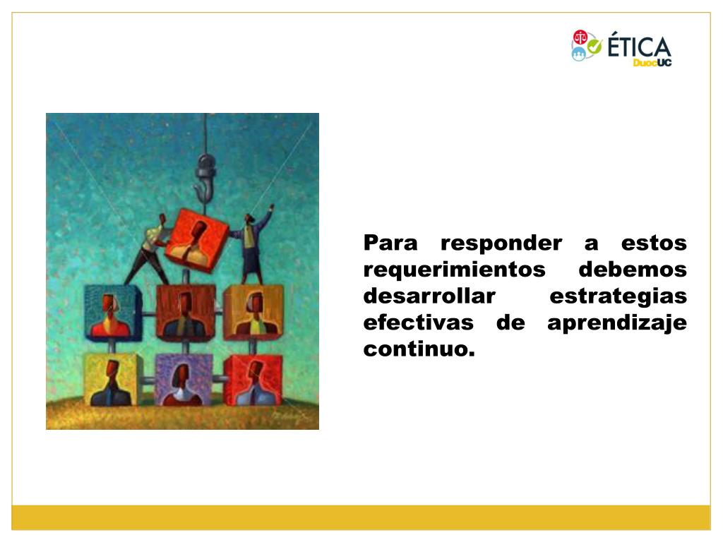 Para responder a estos requerimientos debemos desarrollar estrategias efectivas de aprendizaje continuo.