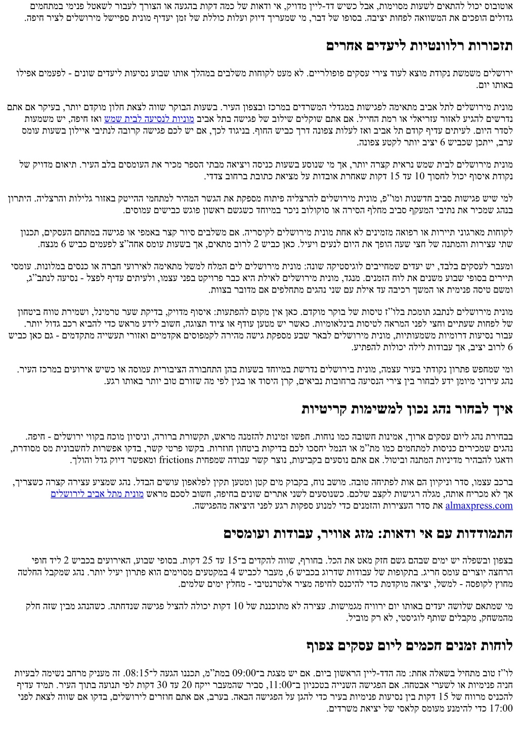 לע עודי םא .םלתשמ תויהל לוכי הנומ ,רתוי תורצקו תורישי תועיסנב .תועתפה ינפמ םכילע ןגמ עובק ריחמ ,הנתמהו תוריצע םע תויקסע תועיסנל .שארמ םכסומ ריחמ ופידעי םיבר ,םייופצ םיסמוע ?ןוגראהמ ריכש גהנ םע יטרפ בכרל לשייפס תינומ ןיב לדבהה המ אל ךרדהשכ לבא ,בוט ןורתפ תויהל לוכי ריכש גהנ .חטשב ןמז לוהינב החמתמו םיריצה תא ריכמש יעוצקמ גהנ העיצמ םילשורימ לשייפס תינומ .קהבומ ןורתי קפסמ הסונמ תינומ גהנ ,תמא ןמזב תוטלחהו תושימג ךירצשכ וא תרכומ ?םוי ותואב ג”בתנמ הסיט םע הפיחב תושיגפ םיבלשמ דציכ תבלושמ גבתנל םילשורימ תינומ .הארמהה ינפל תועש שולש תוחפל לש חוורמ םע ג”בתנל הרזח ואצו ,הפיחב הרצק השיגפ ועבק ,םדקומ וליחתה .םיינדפק האיצי ינמזו קיודמ םואית תשרוד ךא ,תירשפא םוי ותואב הפיחב הריצע םע ?םיסומע תועובשל עובק גהנ ןיירשל יאדכ םאה הז ,הפיחל םילשורי ןיב עובשב תועיסנ המכ םילהנמש םינוגראב .םואית ינמז רצקמו ,ז”ול תיינבב עייסמ ,םכלש תופדעהה תא דמול עובק גהנ .ןכ .העגהה תונימא תא הלעמו ףסכו ןמז ךסוח רחוסל רבוע עבטמ אוה קויד :יזכרמה רסמה םתוא תמגרתמו ,תואיצמל ןונכת ןיבש םירעפה תא תרגוס תיטרפ תינומ .היישעתו רקחמ ,םיקסע לש ימוימוי גולאיד להנתמ הפיחל םילשורי ןיב לכל םיאתמש דחא ובאט ןיאש עדוי עובק ןפואב הלאכ תועיסנ לע ךמתסמש ימ .םיחוטבו םיזכורמ ,ןמזב עיגהל - רתויב טושפה דדמב יתורחת ןורתיל המ .הנומ ילוא ינשבו ,עובקה ריחמה ורחבת דחא םויב .2 ביבא לתל םילשורימ תינומ סרפסקא אמלא שיבכ םימעפל ,ףידע 6 שיבכ םימעפל .בצמ .הברהב הרצק החלצהל ךרדה םשמ .םינטקה םיטרפל בל תמושתו ,הסונמ גהנ ,םדקומ םואית לש ךרעה אוה הנתשמ אלש סרפסקא אמלא לארשי ,םילשורי :תבותכ 050-912-2133:ןופלט almaxpress.com:רתא ביבא לת · ג״בתנ · שמש תיב · םילשורי :תוריש ירוזא תועיסנ · הפועתה הדשל תורבעה · VIP תועסה · ביבא לת תוינומ · שמש תיב תוינומ · םילשורי תוינומ · ג״בתנל תינומ :תוריש תוירוגטק םיעוריאל תועסה · תונולמל תועסה · תוינוריע-ןיב ירבוד םייעוצקמ םיגהנ ,24/7 תונימז .ביבא לתו ג״בתנ ,שמש תיב ,םילשוריב VIP תועסהו תוינומ יתוריש – סרפסקא אמלא :(Blurb) רואית תונולמל תועסה ,תוינוריע-ןיב תועיסנ ,ונממו ג״בתנל תורבעהב תוחמתה .םיקסע ישנאו םיריית ,תוחפשמל םיחוורמו םישידח םיבכרו ,תילגנא .ןמזב קיודמו חוטב ,ןימא תוריש החיטבמ שארמ הנמזה .ץראה לכב םייטרפ םירויסו ,םיעוריאלו Almaxpress Address: Jerusalem, Israel Phone:+972 50-912-2133 Website:almaxpress.com Service Areas: Jerusalem · Beit Shemesh · Ben Gurion Airport · Tel Aviv Service Categories: Taxi to Ben Gurion Airport · Jerusalem Taxi · Beit Shemesh Taxi · Tel Aviv Taxi · VIP Transfers · Airport Transfers · Intercity Rides · Hotel Transfers · Event Transfers Blurb: ALMA Express provides premium taxi and VIP transfer services in Jerusalem, Beit Shemesh, Ben Gurion Airport, and Tel Aviv. Available 24/7 with professional English-speaking drivers and modern, spacious vehicles for families, tourists, and business travelers. We specialize in airport transfers, intercity rides, hotel and event transport, and private tours across Israel. Book in advance for reliable, safe, on-time service.