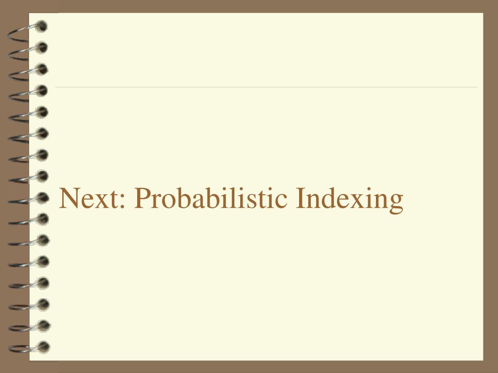 Probabilistic Indexing • Probabilistic Retrieval: • Many Documents - One Query • Probabilistic Indexing: • One Document - Many Queries • Binary Independence Indexing (BII):dual to Binary Independence Retrieval (part II) • Darmstadt Indexing (DIA) • n-Poisson Indexing