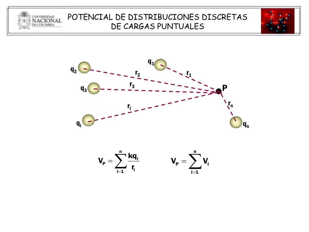 r1 rn r3 r2 ri POTENCIAL DE DISTRIBUCIONES DISCRETAS DE CARGAS PUNTUALES q1 q2 q3 qi qn