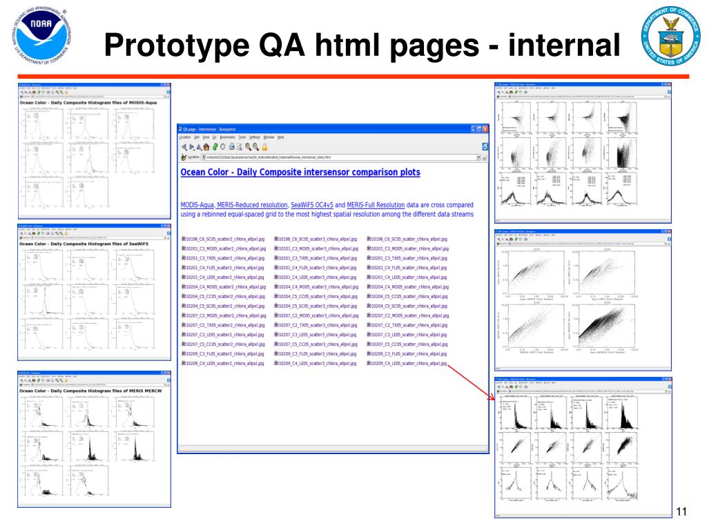 Tools available to OSDPD for Quality checks • CDAT tools provide line command executables as well as through interactive graphics for individual data file Quality checks. • Detailed probe will require scripting line commands using Perl or IDL invoking CDAT function calls. • Java tool (Ocean Toolkit) for time series display will be maintained on the Cal/Val webpage with OSDPD access. All STAR produced QA products will be displayed on this webpage. • Visual inspection via link to CWpage for daily collection of images • http://www.osdpd.noaa.gov/ml/ocean/color.html