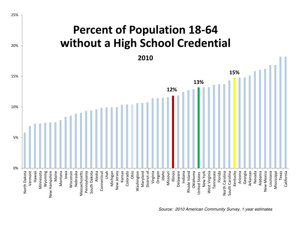 Illinois Adult Education System Decade of Progress Population, 18-64, without a High School Credential 2000** 2010*** **2000 U.S. Census ***2006-10 American Community Survey