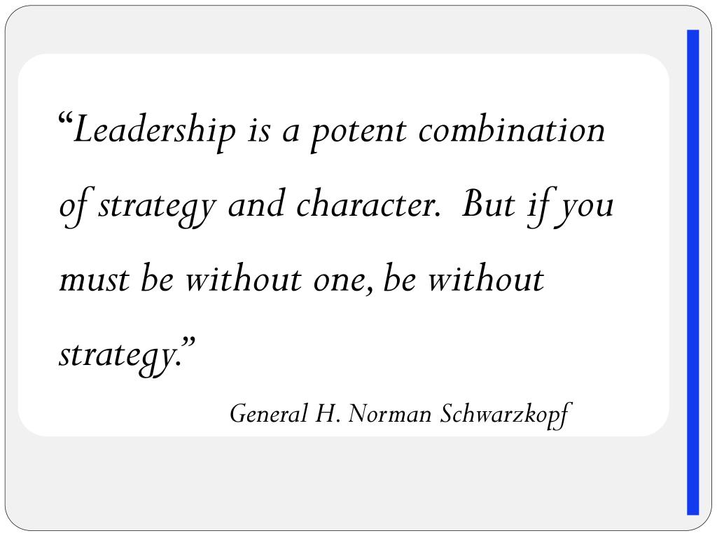 “Leadership is a potent combination of strategy and character. But if you must be without one, be without strategy.” General H. Norman Schwarzkopf