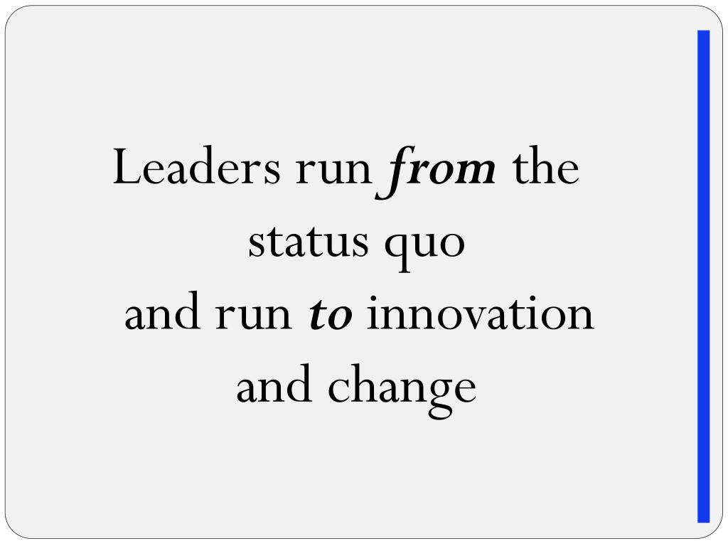 Leaders runfromthe status quo and run to innovation and change