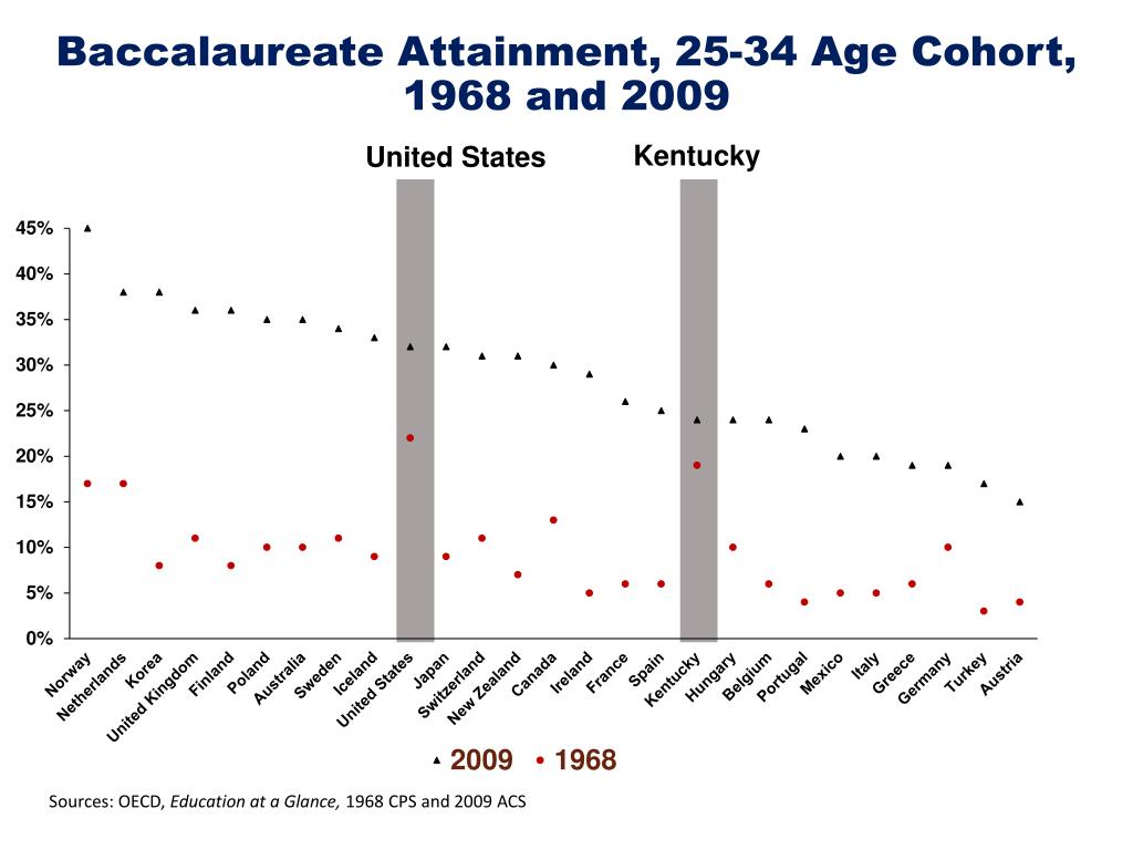 Baccalaureate Attainment 25-34 Age Cohort, 1968 United States Kentucky Sources: OECD, Education at a Glance , 1968 CPS