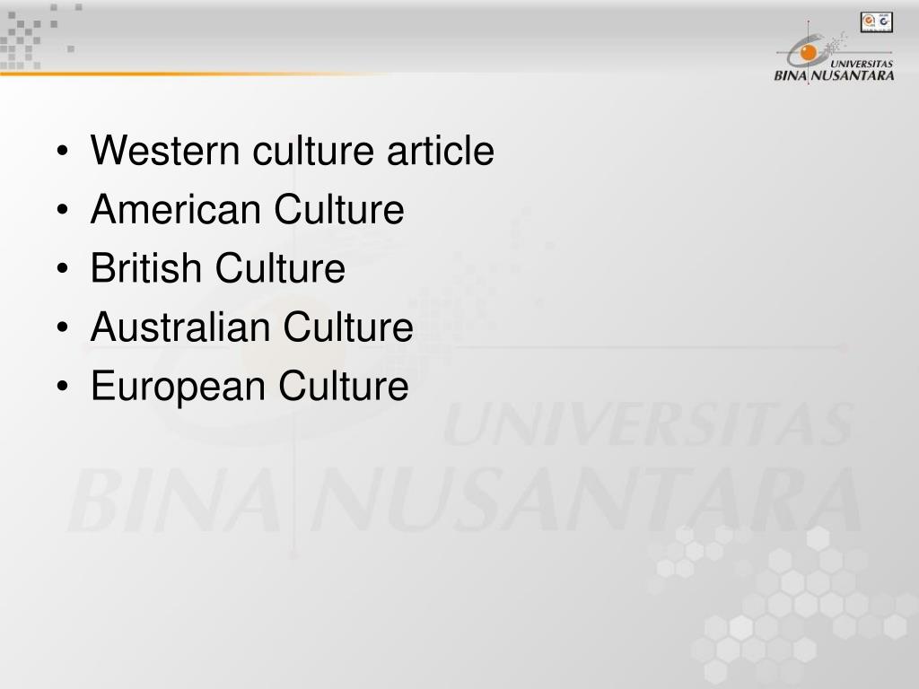 Western culture article • American Culture • British Culture • Australian Culture • European Culture