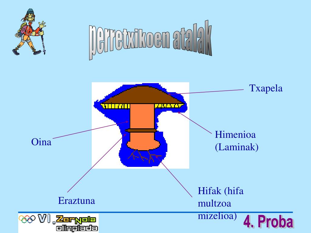 perretxikoen atalak Txapela Himenioa (Laminak) Oina Hifak (hifa multzoa mizelioa) Eraztuna