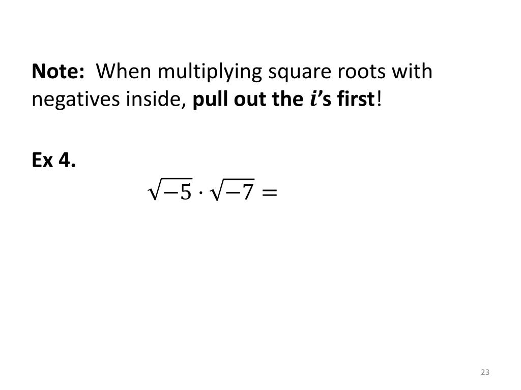 Note: When multiplying square roots with negatives inside, pull out the ’s first! Ex 4.