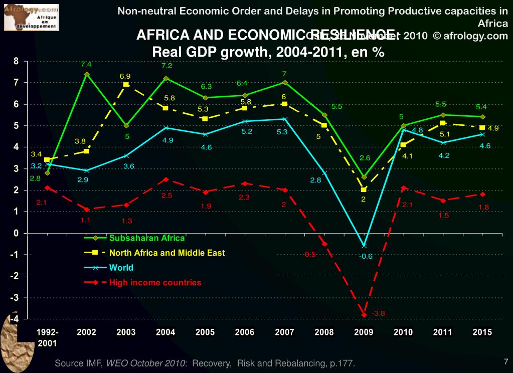 AFRICA AND ECONOMIC RESILIENCE: Real GDP growth, 2004-2011, en % Source IMF, WEO October 2010: Recovery, Risk and Rebalancing, p.177.