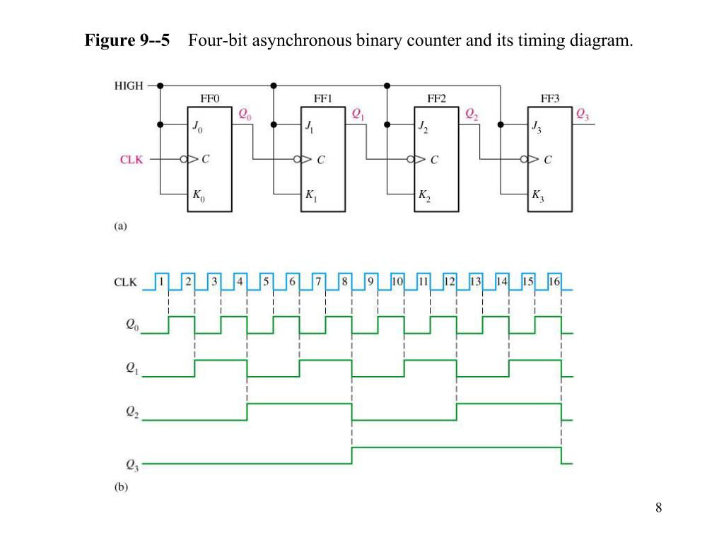 Asynchronous Counter Operation Figure 9--1 A 2-bit asynchronous binary counter.
