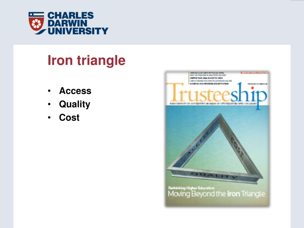 TEQSA Bill 2011 • Part 1 Objects and Definitions • Part 2 Basic Principles • Part 3 Registration • Part 4 Accreditation of Courses of Study • Part 5 Higher Education Standards Framework • Part 6 Investigative Powers • Part 7 Enforcement • Part 8 TEQSA • Part 9 Higher Education Standards Panel • Part 10 Administrative Law matters • Part 11 National register of HE Providers • Part 12 Miscellaneous http://www.austlii.edu.au/au/legis/cth/consol_act/teqasaa2011466/index.htm l