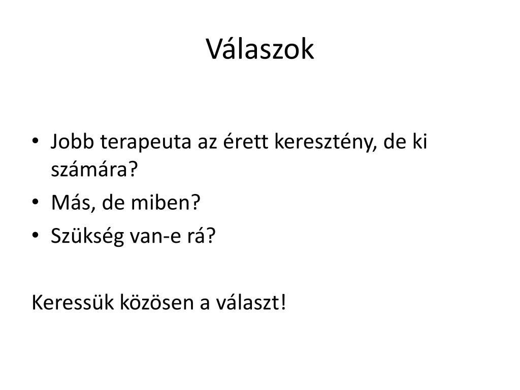 Válaszok • Jobb terapeuta az érett keresztény, de ki számára? • Más, de miben? • Szükség van-e rá? Keressük közösen a választ!