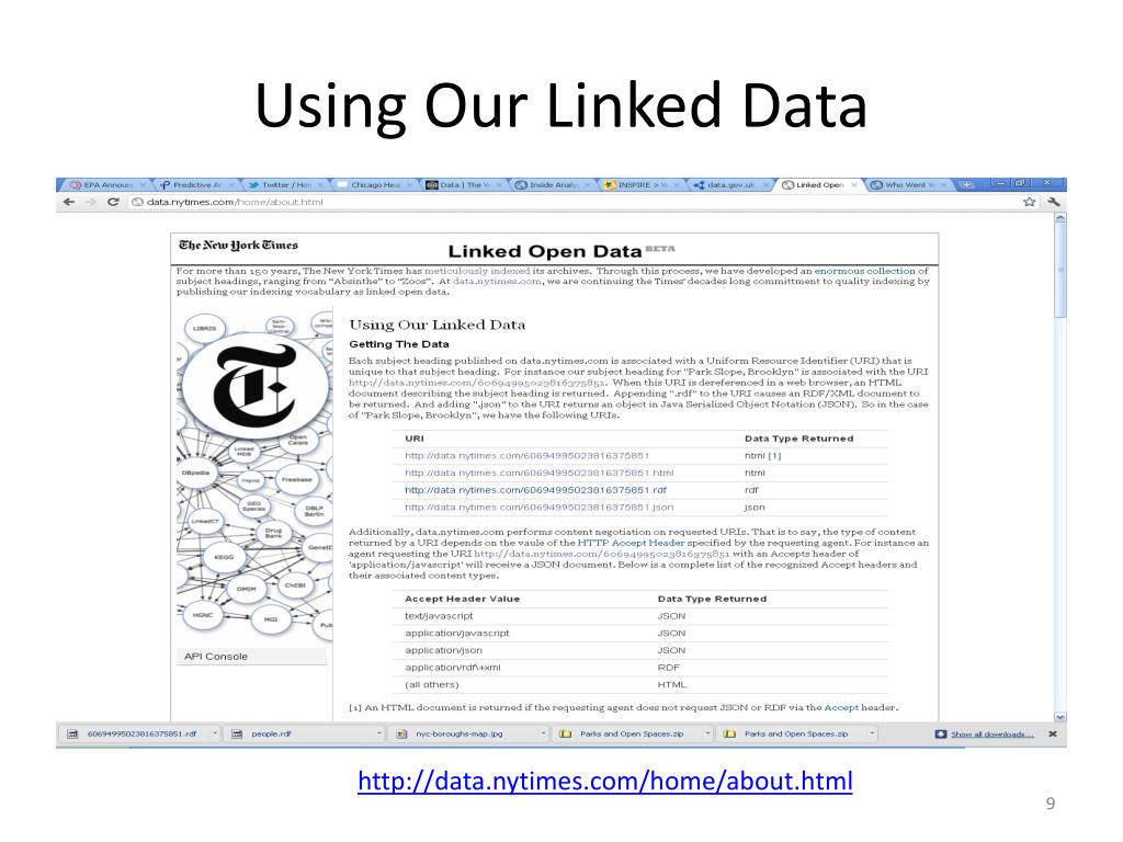 Using Our Linked Data http://data.nytimes.com/home/about.html