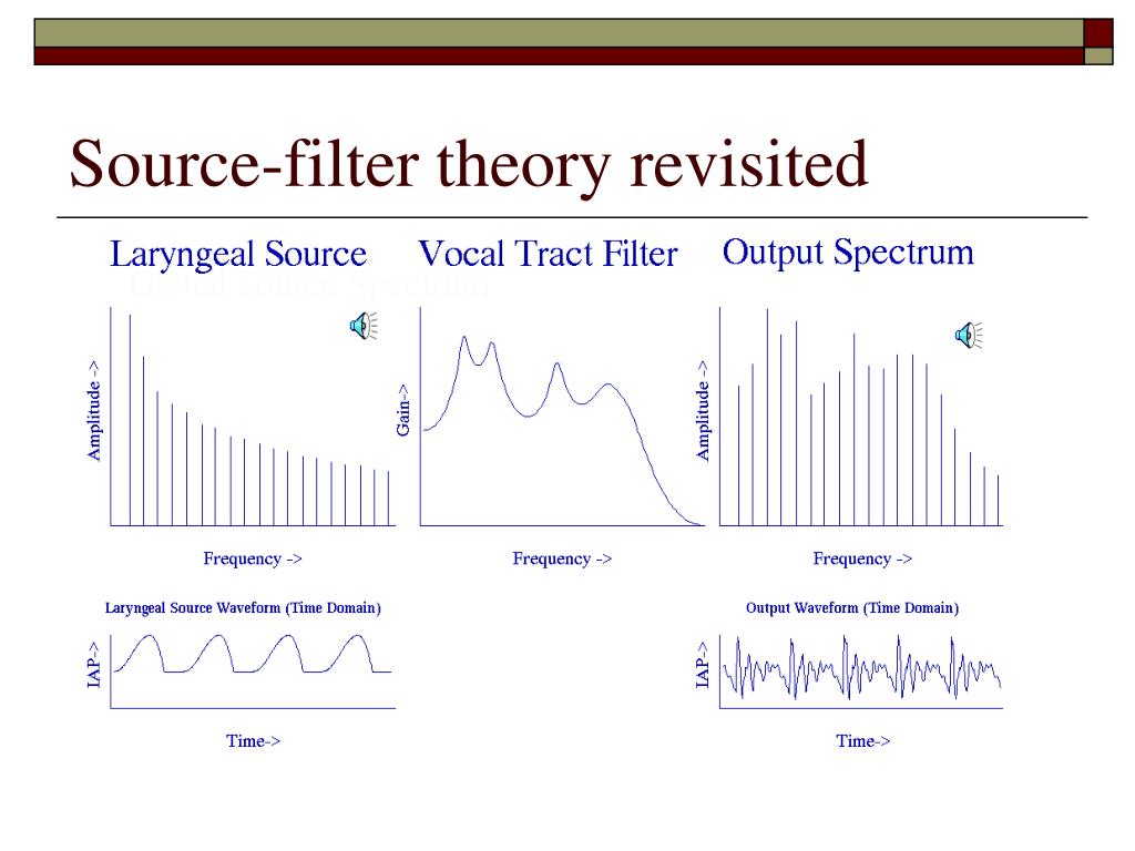 Tubes have physical characteristics Tubes are acoustic resonators Acoustic resonators have frequency response curves (FRC) (or transfer functions) Physical characteristics dictate FRC Vocal tract as a tube