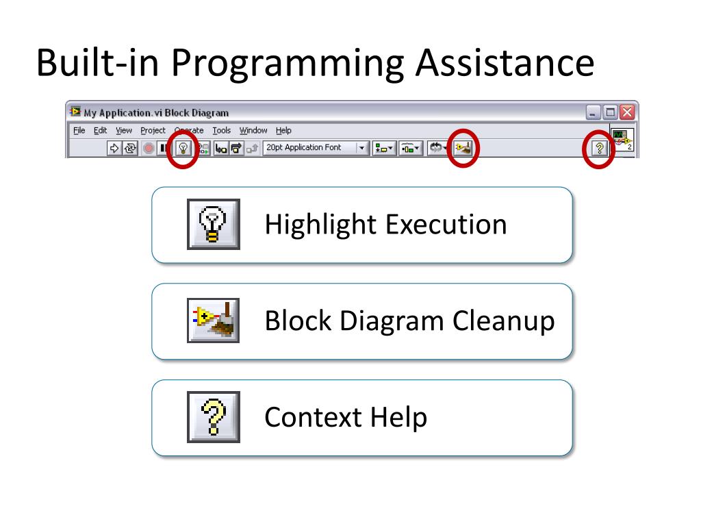 Built-in Programming Assistance Highlight Execution Block Diagram Cleanup Context Help