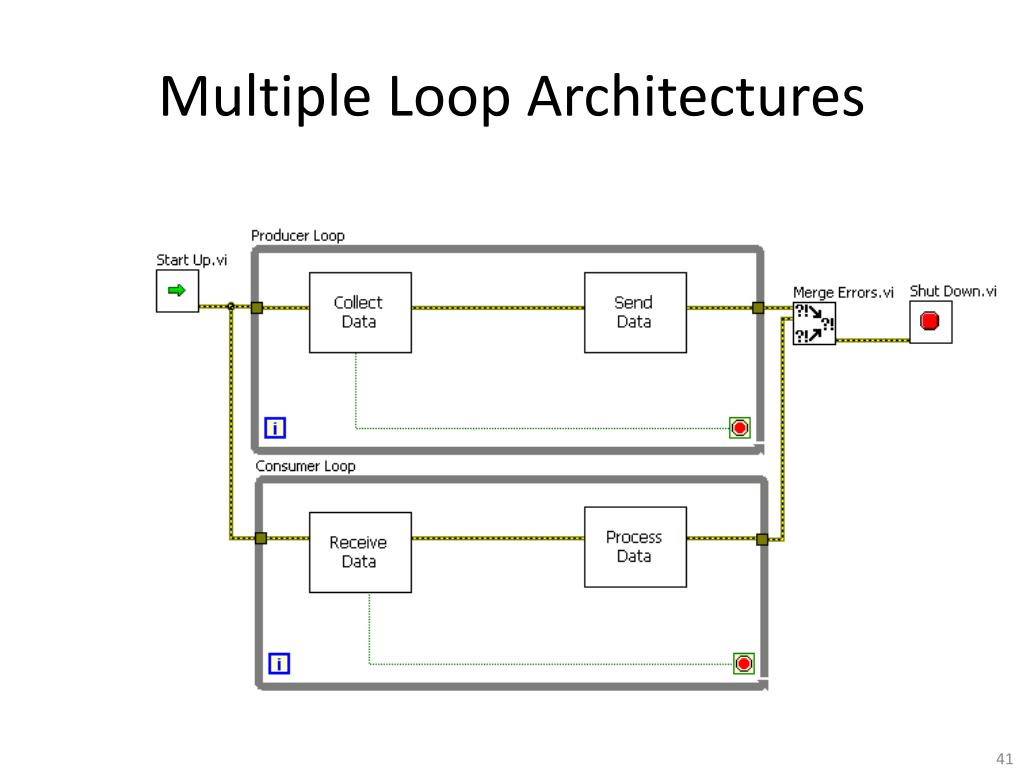 Timing Methods • Wait Until Next Multiple VI – Variable time of execution • Execute A, Execute B, sleep until OS timer reaches next multiple of 20 ms • Wait VI – Constant time of execution • Execute A, Execute B, sleep 10 ms