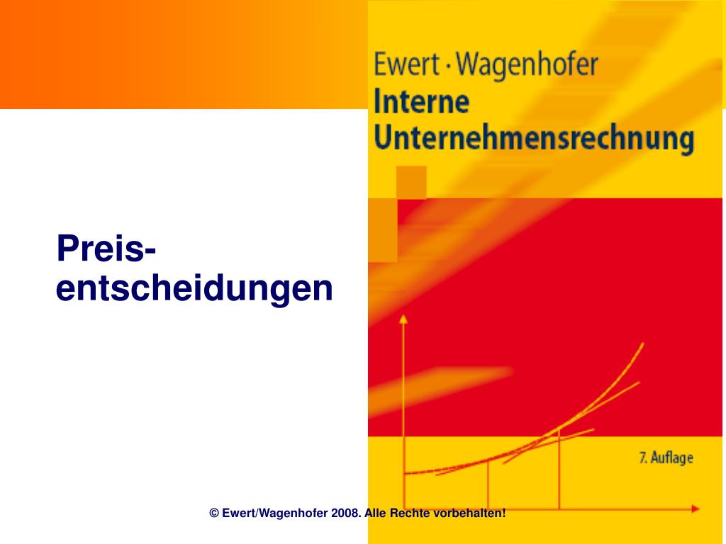 Preis-entscheidungen. © Ewert/Wagenhofer 2008. Alle Rechte vorbehalten!. Ziele . Relevante Kosten für Preisgrenzen Bestimmung kurzfristiger und langfristiger Preisuntergrenzen Optimalitätsbedingungen von Preisentscheidungen Einfluss von Fixkosten auf Preisgestaltung