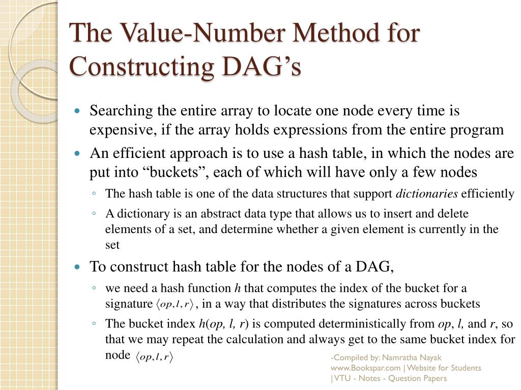 The Value-Number Method for Constructing DAG’s -Compiled by: Namratha Nayak www.Bookspar.com | Website for Students | VTU - Notes - Question Papers