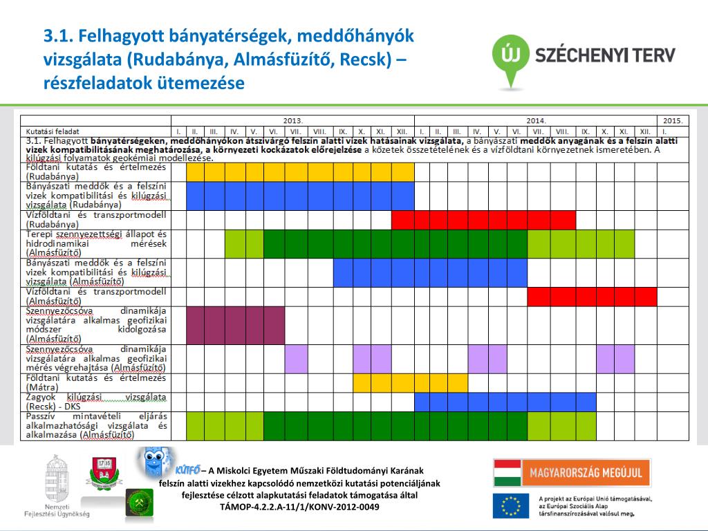 3.1. Felhagyott bányatérségek, meddőhányók vizsgálata (Rudabánya, Almásfüzítő, Recsk) – részfeladatok ütemezése