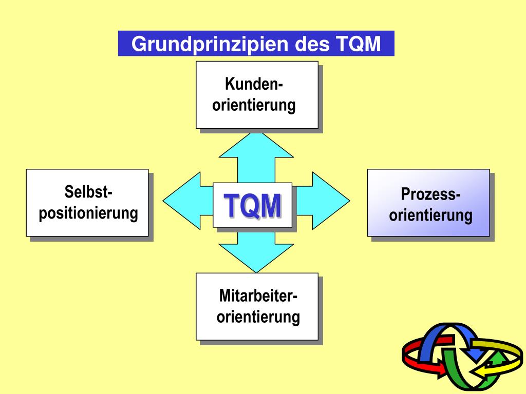 Kunden- orientierung Selbst- positionierung Prozess- orientierung TQM Mitarbeiter- orientierung Grundprinzipien des TQM