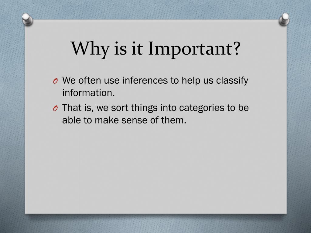 Why is it Important? • We often use inferences to help us classify information. • That is, we sort things into categories to be able to make sense of them.