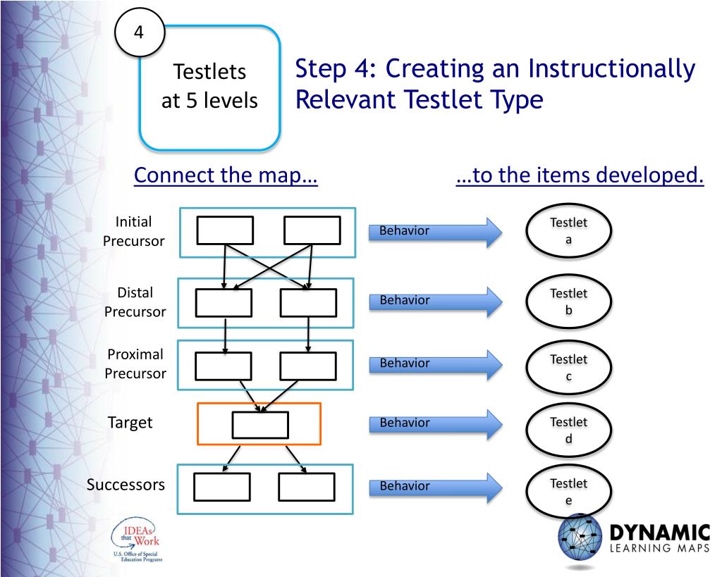 Testlet Development 1 2 Essential Element Concept Map Dynamic Learning Map IterativeReview Essential Element 3 4 5 Testlets at 5 levels
