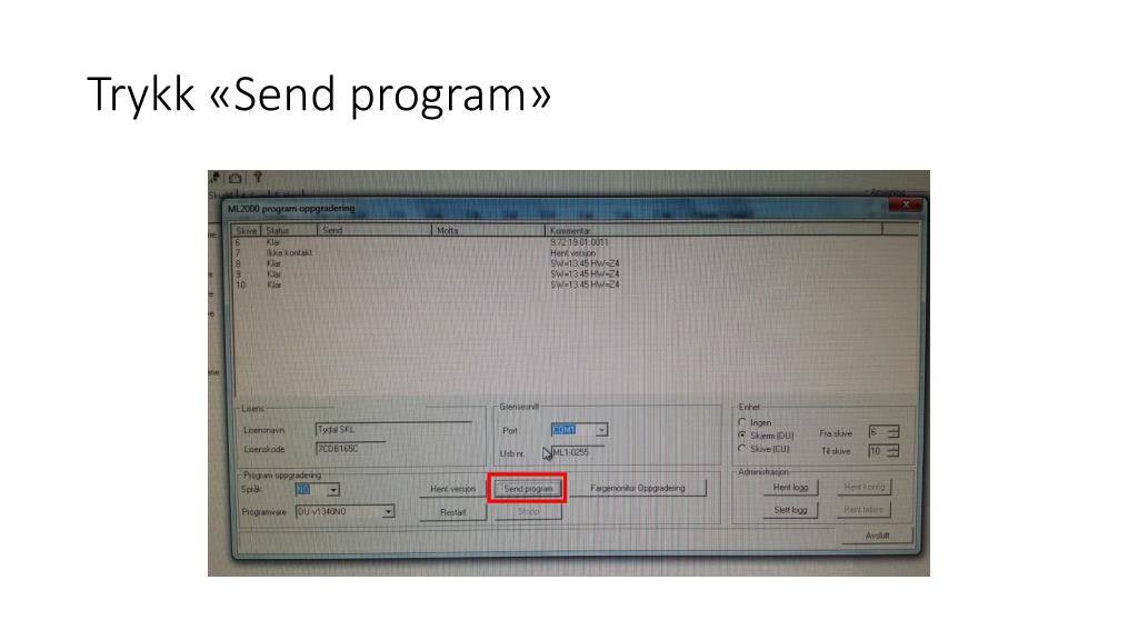 Last ned ny programvare fra Megfalink.no • Installer MlLeder på standplass-pc • Megalink adapteret skal kobles opp som normalt ved oppgradering av monitorer. Ved oppgradering av skiver skal adapteret flyttes. Kommer lengre ut i denne veiledningen. • Pass på at det ikke kommer noen for å bruke banen når oppgradering pågår. • Avbrytes oppgraderingen kan det hende at en må sende inn monitoren til Megalink for «flashing». I noen tilfeller, om en er heldig kan monitoren oppgraderes på nytt om den starter «normalt». • Sett opp plakat slik at ingen rører monitorene!!!