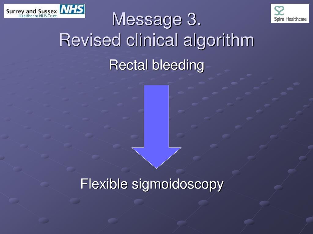 Message 3.Revised clinical algorithm Rectal bleeding Flexible sigmoidoscopy