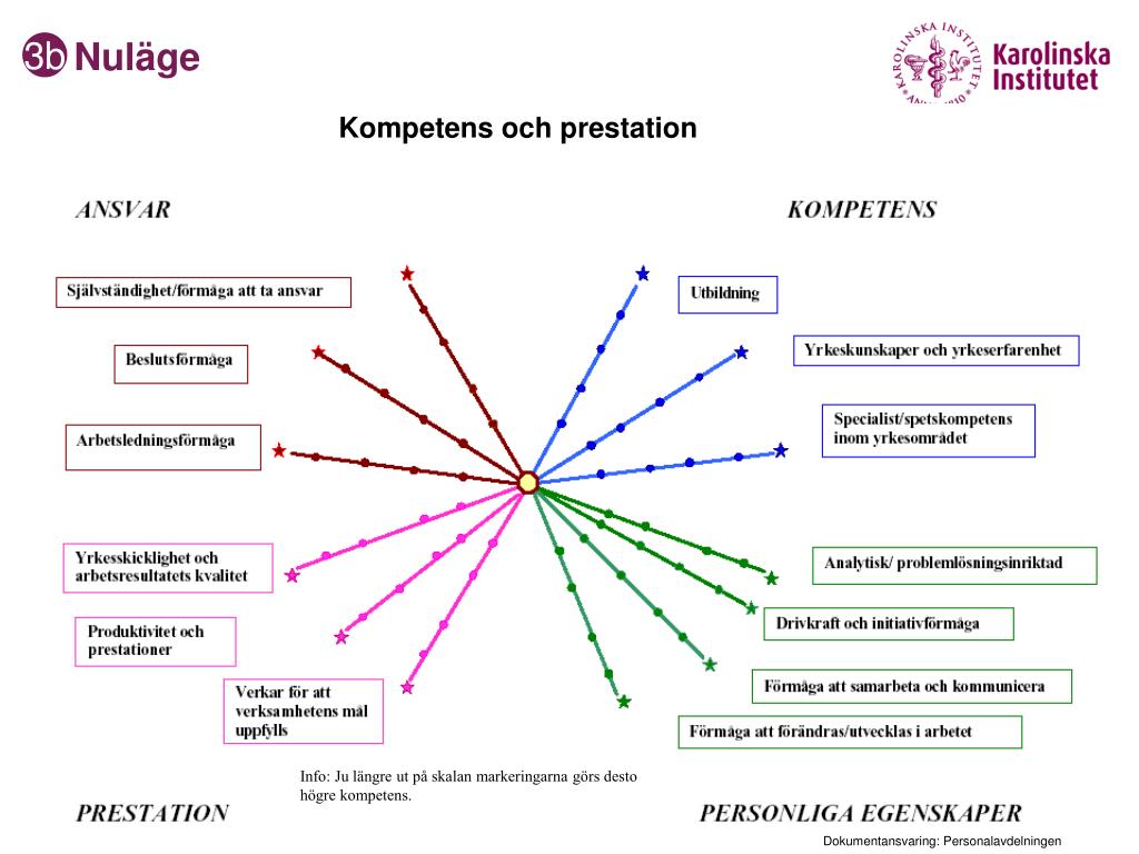 Nuläge 3b Kompetens och prestation Info: Ju längre ut på skalan markeringarna görs desto högre kompetens. Dokumentansvaring: Personalavdelningen