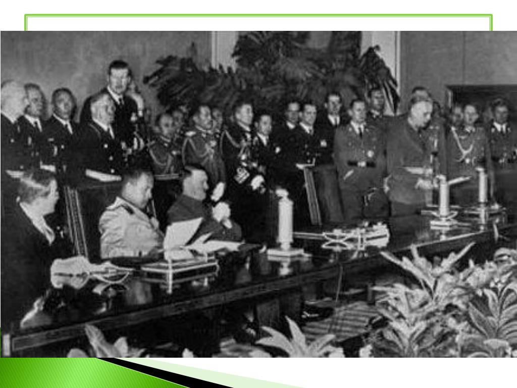 Axis Powers Combine • September 1940 • Germany, Italy, and Japan sign Tripartite Pact – mutual defense agreement • Aimed to keep America out of War • If America declares war on any member, others pledge support – war across Atlantic and Pacific
