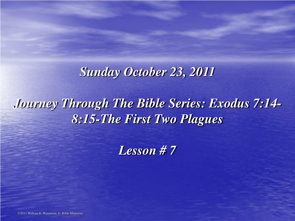 Sunday October 23, 2011Journey Through The Bible Series: Exodus 7:14-8:15-The First Two PlaguesLesson # 7