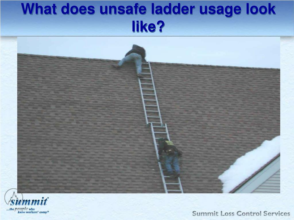 Summit’s“TOOLBOX SAFETY TALK” Ladder Safety OSHA CFR 1910.25, 1910.26and 1910.27 WELCOME